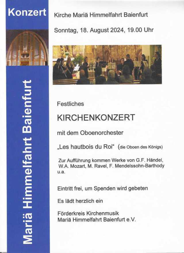 Zwei Tage nach dem kirchlichen Feiertag Mariä Himmelfahrt veranstaltete der Förderkreis Kirchenmusik Mariä Himmelfahrt Baienfurt e.V. zu diesem Anlass ein festliches Kirchenkonzert.