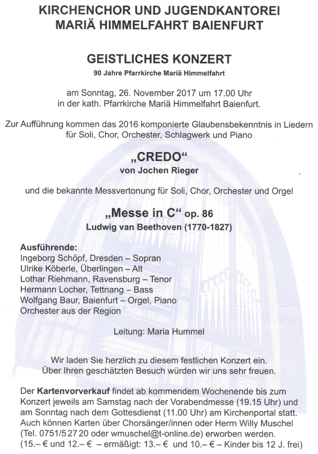 Geistliches Konzert am 19. und 20. Nov. 2016