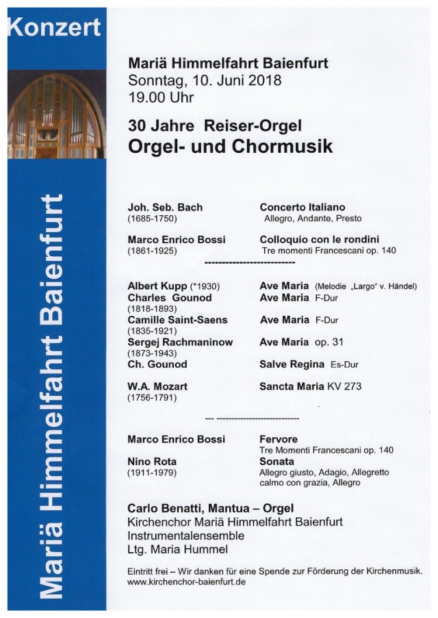 Des Weiteren hob sie die Leistung des Organisten, Carlo Benatti