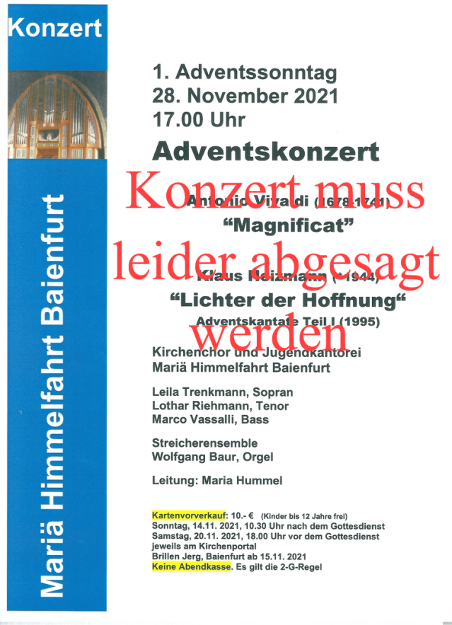 Durch die aktuelle Entwicklung der Corona-Pandemie mussten wir das geplante Adventskonzert leider absagen