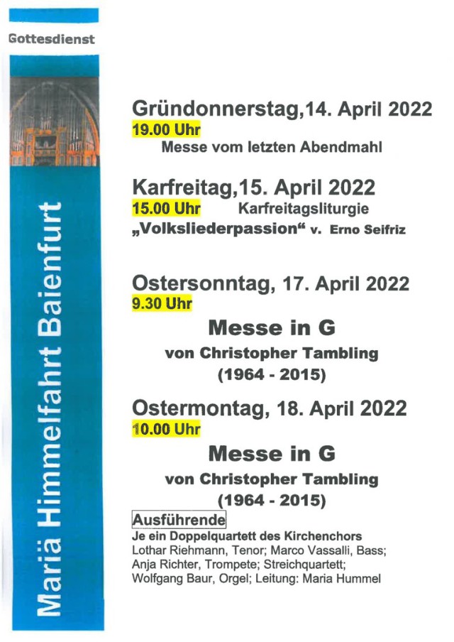 Ensembles und ihres präzisen Dirigats hält Maria Hummel den Kirchenchor und die Jugendkantorei Baienfurt auch in den diffizileren Passagen der Komposition zusammen. Eine solide Begleitung leistet
