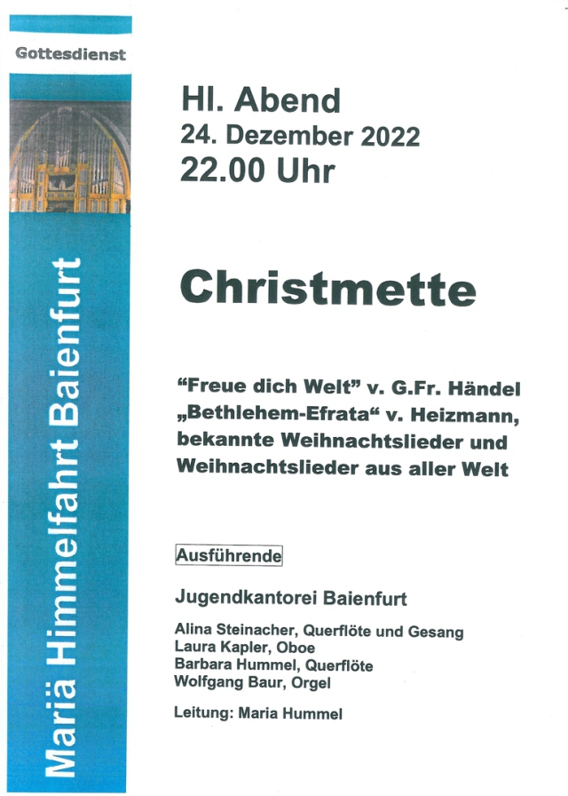 In der Christmette am Hl. Abend um 22 Uhr singt und musiziert