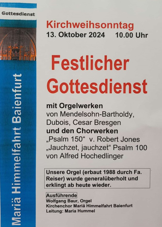 Nach den Liedern der Seligpreisungen von Rieger spielte er die Orgelsonaten op. 65 von F. Mendelsohn Bartholdy auf der großen Orgel.