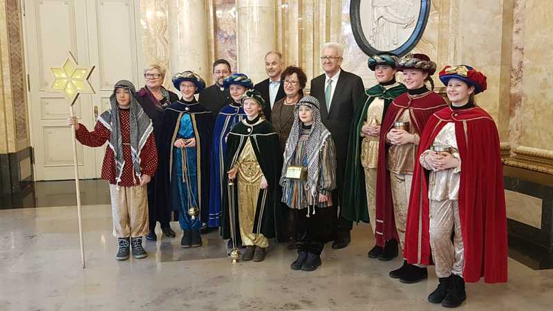 Ministerpräsident Winfried Kretschmann empfängt Baienfurter Sternsingergruppe