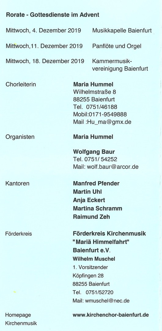 Kirchenchor - Jugendkantorei - Förderkreis Mariä Himmelfahrt Baienfurt